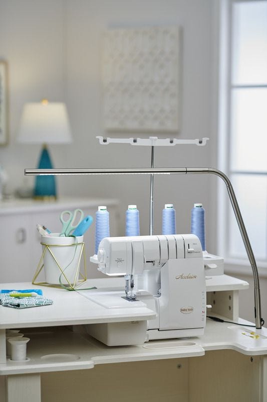 Baby Lock Acclaim Serger Machine – Your serging is about to receive a new level of critical Acclaim. The Baby Lock Acclaim serger features RevolutionAirâ„¢ Threading that threads the loopers with just the touch of a button and then threads the needles with the touch of another. You’ll also serge tension-free with the Automatic Thread Deliveryâ„¢ System (ATD) and the exclusive Wave Stitch will expand your creative options even further — making every one of your creations stand out like no other. The Baby Lock Acclaim serger`s top features include: Easy push button looper and needle threading. Wider workspace – 2 to the right of the needle. No tension adjustments. 4/3/2 thread serging. 3 bright LED lights. Full featured differential feed. Exclusive Wave Stitch.