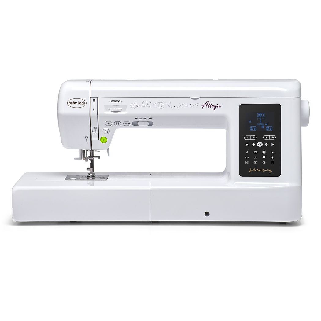 The Baby Lock Allegro quilting machine is the perfect machine for piecing and quilting large projects. With 12 of creative space, 200 built-in stitches, two alphanumeric fonts, and convenient push-button features, you have everything you need to bring your creative visions to life. The Baby Lock Allegro quilting and sewing machine features include: 200 Built-In Stitches, 12 of Creative Space, Programmable Needle Up/Down, Up to 1,000 Stitches per Minute, Built-In Needle Threader