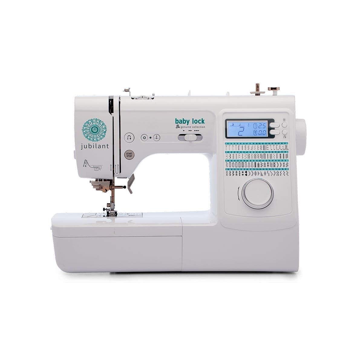 Baby Lock Jubilant Sewing Machine – Want a machine that’s a jack-of-all-trades yet small enough to take on the road, to a class or even to a friend’s house? Then it’s time to celebrate, because you found it. The Baby Lock Jubilant sewing machine is ideal for a variety of sewing projects like quilt piecing, smaller home décor and even basic garments. It’s a machine that gives you plenty of genuine opportunities to let your creativity shine and be jubilant. The Baby Lock Jubilant sewing machine`s top features include: 80 built-in stitches including 8 one-step buttonholes. Automatic needle threader. LCD screen. Quick-set, drop-in bobbin. Free-arm sewing. Drop feed for free-motion techniques.