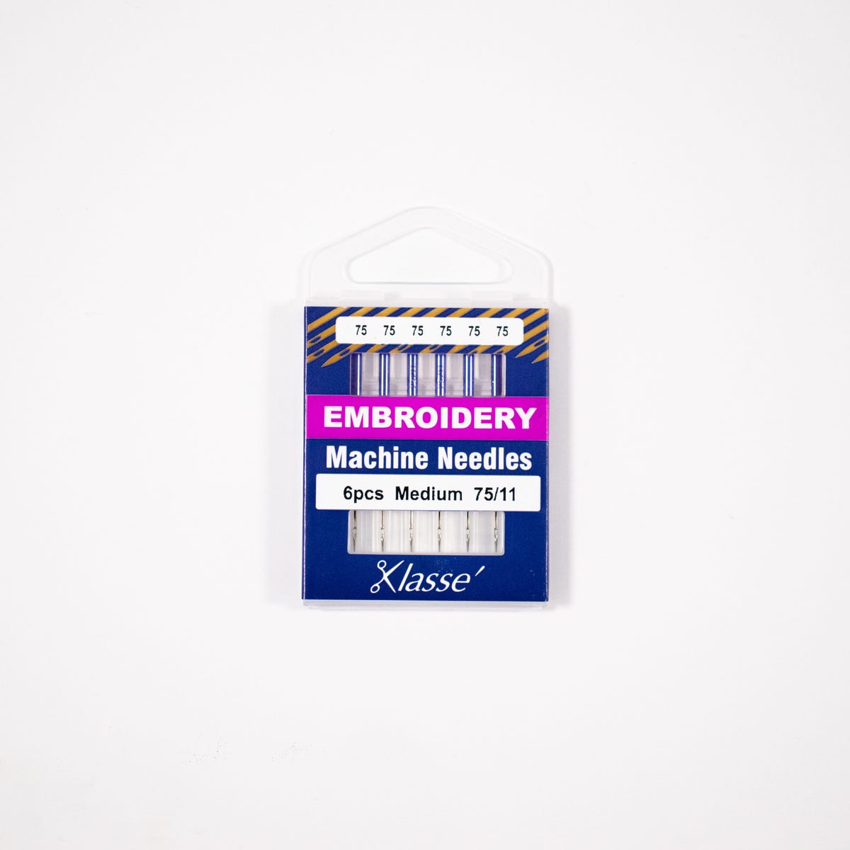 Klasse Embroidery 75/11, 6 Needles, Bundle of 5 – Use this needle type for embroidering with rayon, polyester, cotton or acrylic embroidery thread. The specialty coated; larger eye allows smooth thread flow at higher speeds.